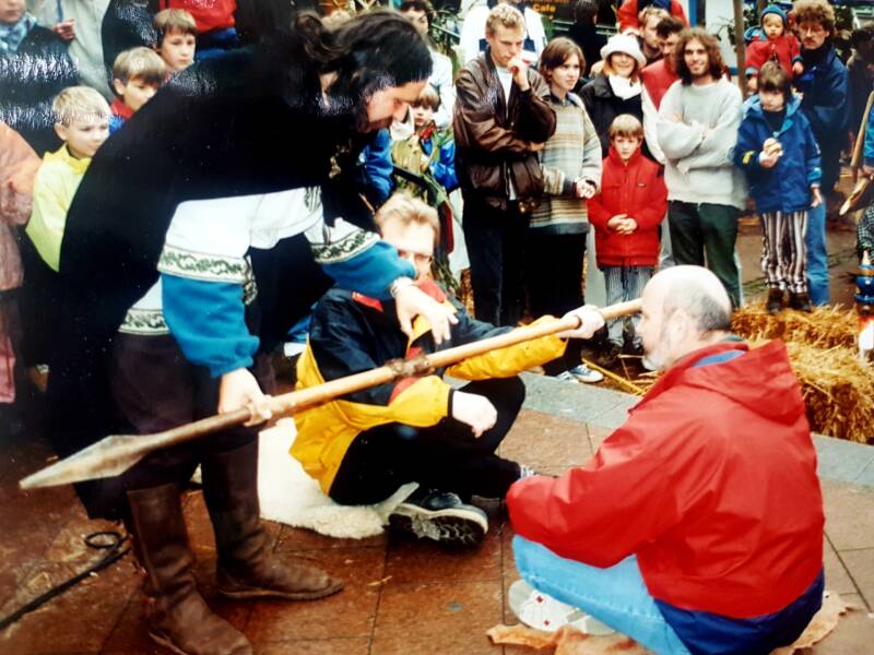 Inklusive Waffendemonstration und Schwertkampf. Altes Handwerk und historische Geschicklichkeitsspiele.